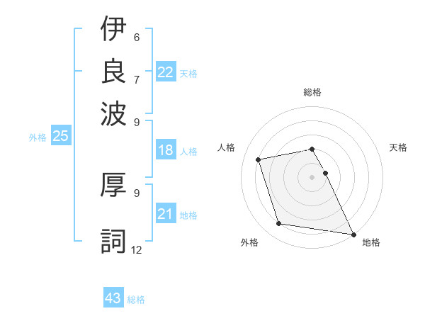伊良波 厚詞さんを姓名の画数から五運を鑑定