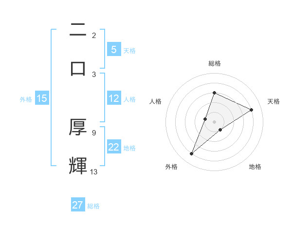 二口 厚輝さんの総格は27画の3点!