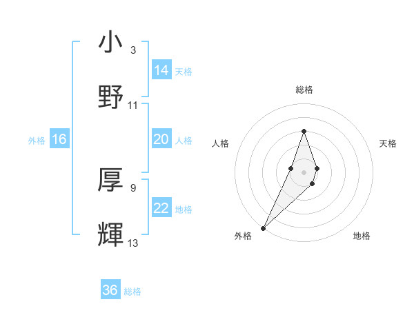 小野 厚輝さんを姓名の画数から五運を鑑定