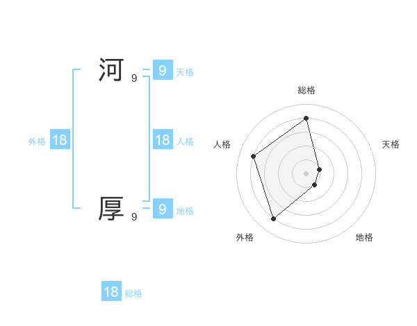 河 厚さんの総格は18画の4点!