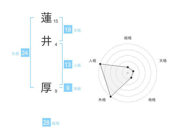 蓮井 厚さんの総格は28画の1点!