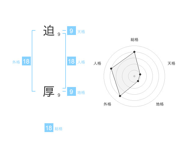迫 厚さんの総格は18画の4点!