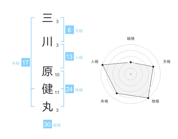 三川 原健丸さんを姓名の画数から五運を鑑定