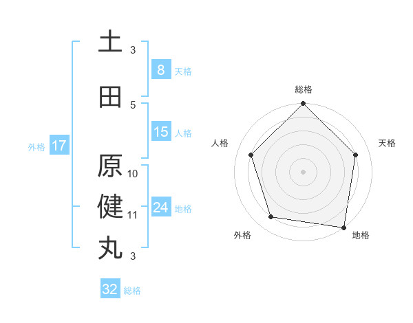 土田 原健丸さんの総格は32画の5点
