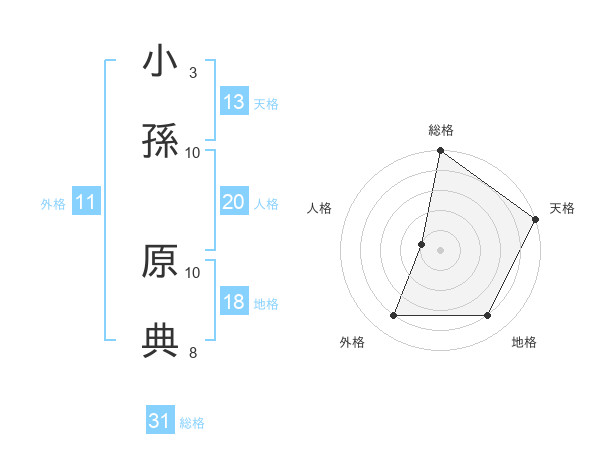 小孫 原典さんの総格は31画の5点!