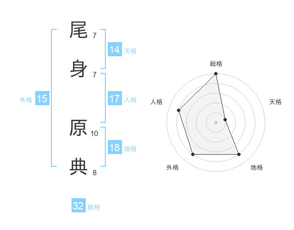 尾身 原典さんの天格は14画の1点!