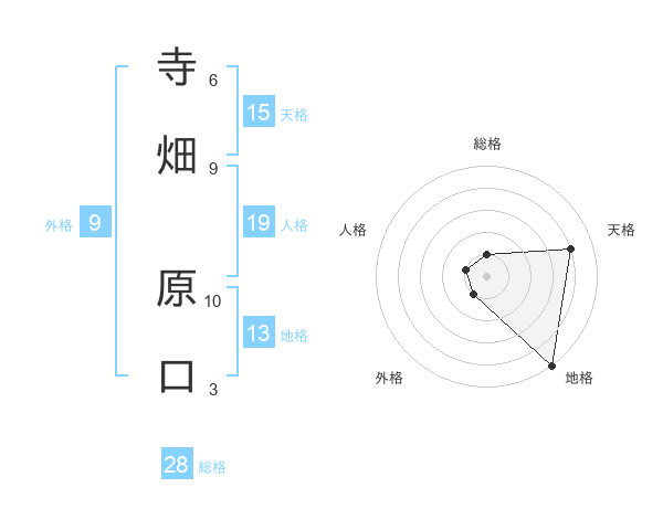 寺畑 原口さんの総格は28画の1点!