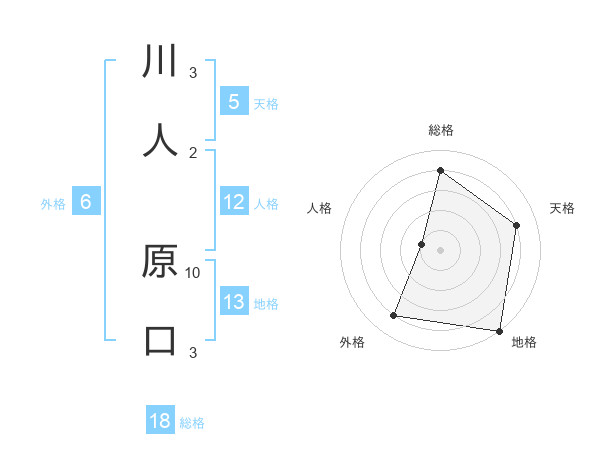 川人 原口さんの地格は13画の5点!