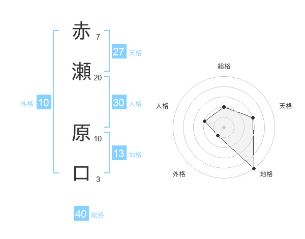 赤瀬 原口さんの地格は13画の5点!