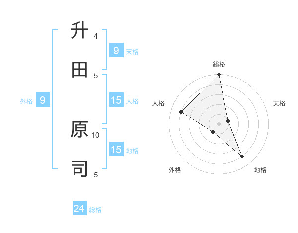 升田 原司さんの総格は24画の5点!