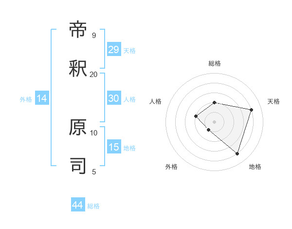 帝釈 原司さんを姓名の画数から五運を鑑定