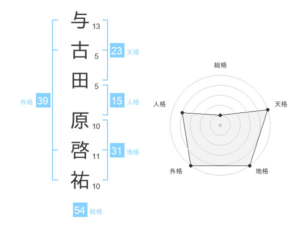 与古田 原啓祐さんを姓名の画数から五運を鑑定