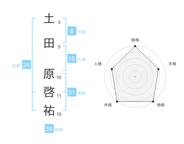土田 原啓祐さんの総格は39画の5点!