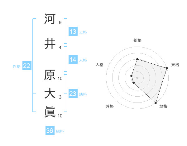 河井 原大眞さんを姓名の画数から五運を鑑定