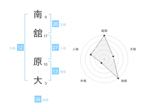 南舘 原大さんの総格は39画の5点!