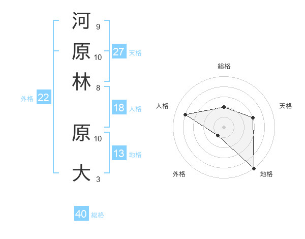 河原林 原大さんの地格は13画の5点!