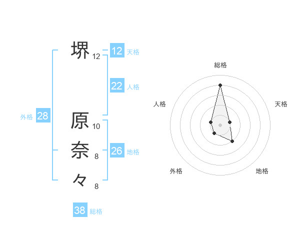 堺 原奈々さんの総格は38画の4点!