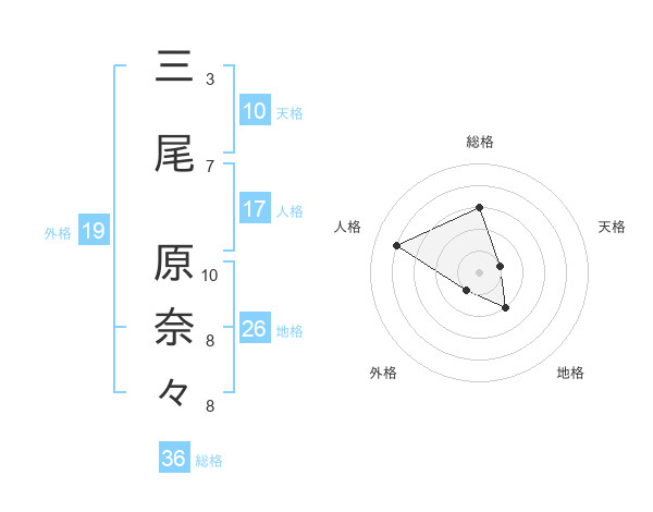 三尾 原奈々さんを姓名の画数から五運を鑑定
