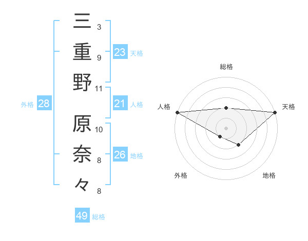 三重野 原奈々さんを姓名の画数から五運を鑑定