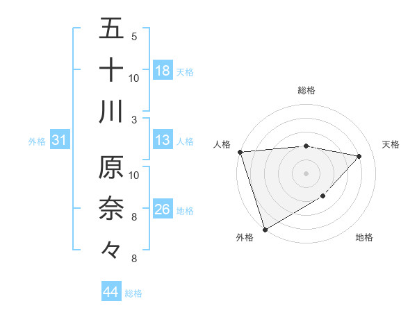 五十川 原奈々さんの天格は18画の4点!