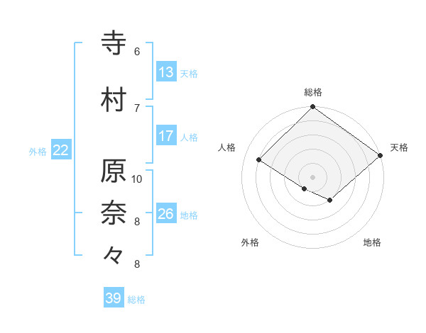 寺村 原奈々さんを姓名の画数から五運を鑑定
