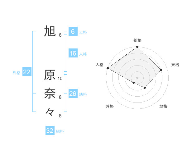 旭 原奈々さんの総格は32画の5点!