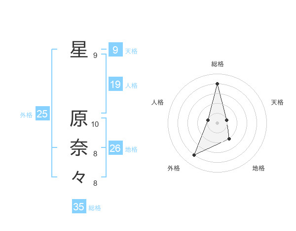 星 原奈々さんの総格は35画の4点!