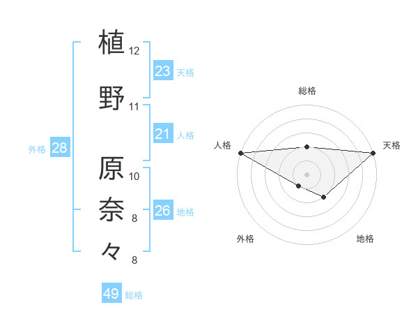植野 原奈々さんの総格は49画の2点