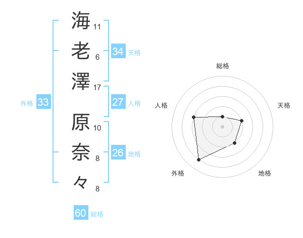 海老澤 原奈々さんを姓名の画数から五運を鑑定