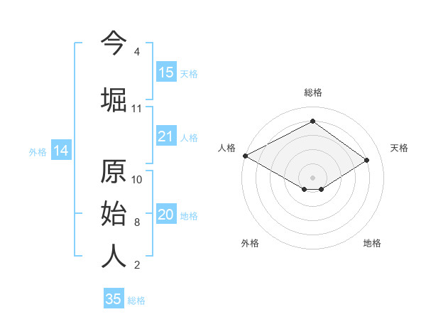 今堀 原始人さんを姓名の画数から五運を鑑定
