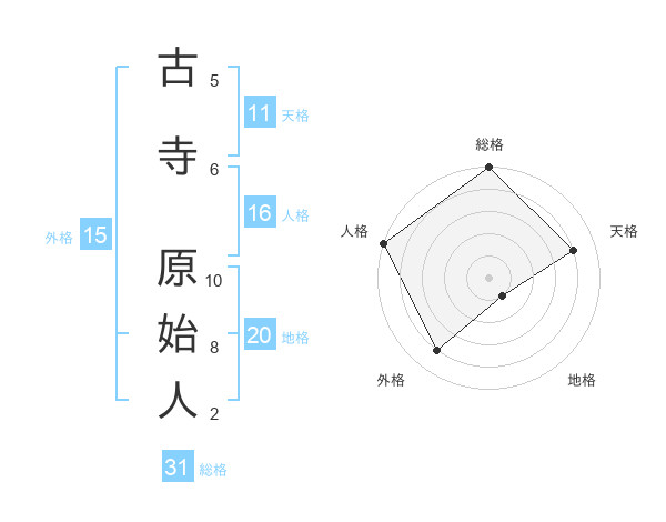 古寺 原始人さんを姓名の画数から五運を鑑定