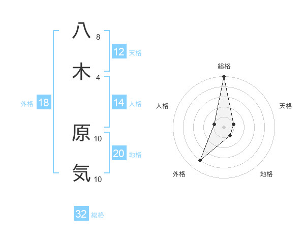 八木 原気さんの総格は32画の5点!