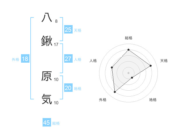 八鍬 原気さんの天格は25画の4点!