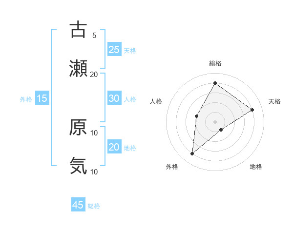 古瀬 原気さんの総格は45画の4点!