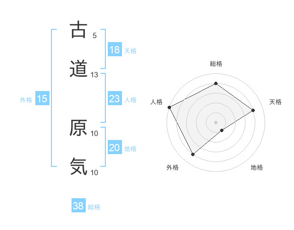 古道 原気さんの総格は38画の4点!