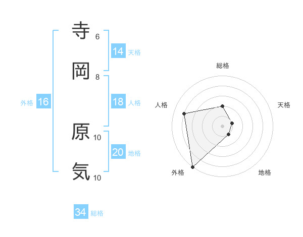 寺岡 原気さんの地格は20画の1点!