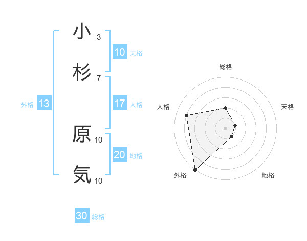 小杉 原気さんの総格は30画の2点!