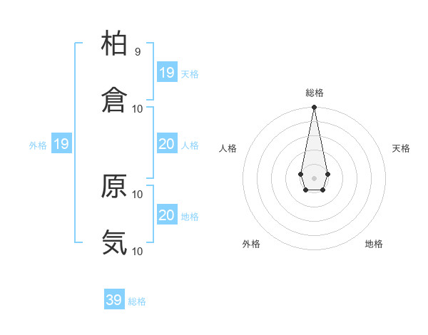 柏倉 原気さんの総格は39画の5点!