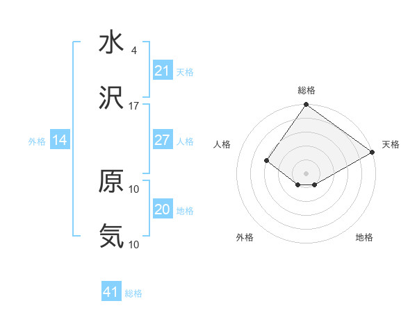 水沢 原気さんの総格は41画の5点!