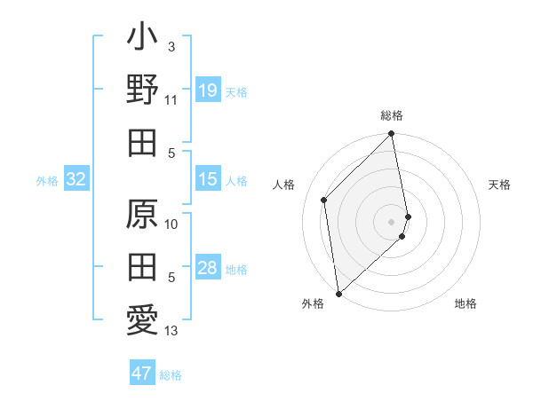 小野田 原田愛さんを姓名の画数から五運を鑑定