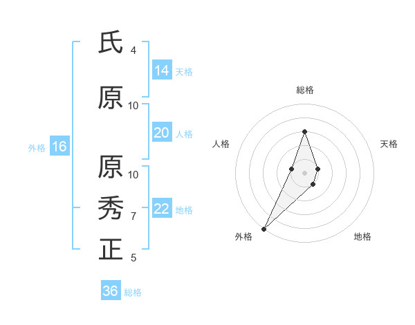 氏原 原秀正さんの外格は16画の5点!