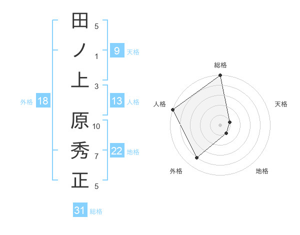 田ノ上 原秀正さんの総格は31画の5点!