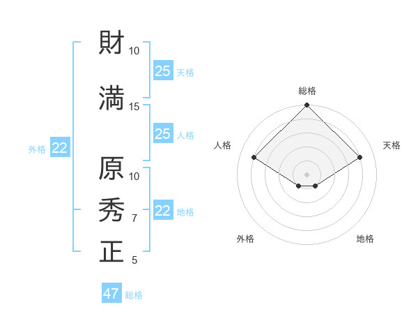 財満 原秀正さんを姓名の画数から五運を鑑定