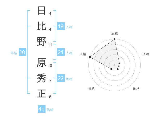 日比野 原秀正さんを姓名の画数から五運を鑑定