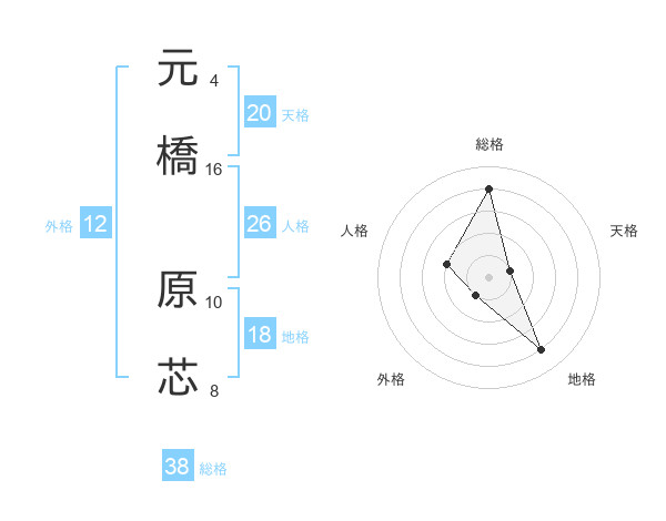 元橋 原芯さんの総格は38画の4点!