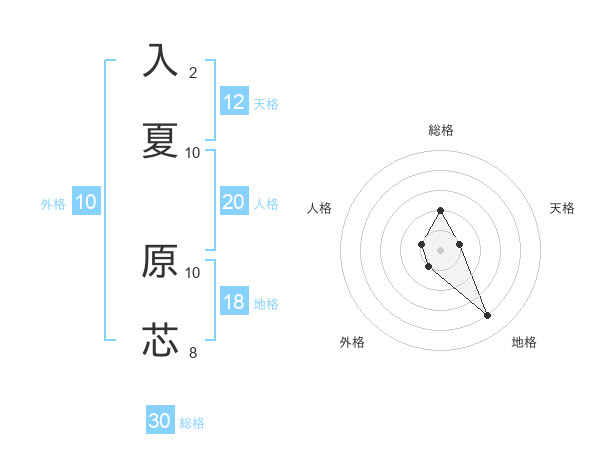 入夏 原芯さんを姓名の画数から五運を鑑定