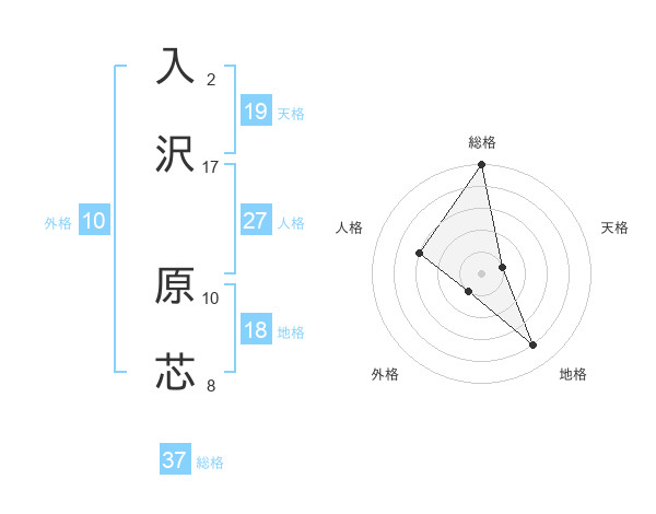 入沢 原芯さんを姓名の画数から五運を鑑定