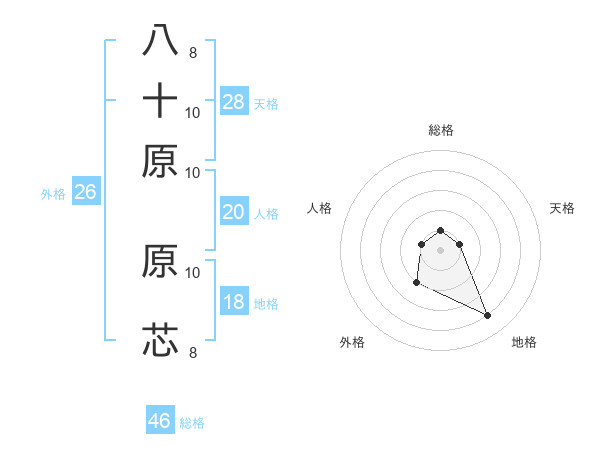 八十原 原芯さんの総格は46画の1点!
