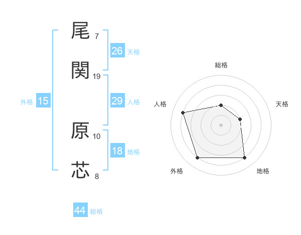 尾関 原芯さんを姓名の画数から五運を鑑定
