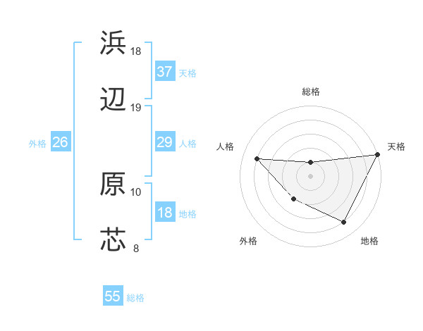 浜辺 原芯さんの天格は37画の5点!